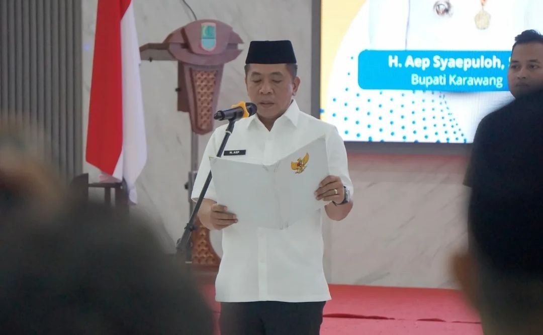 KARAWANG | SUARAKARAWANG.ID – Bupati Karawang Aep Syaepuloh melantik dan mengambil sumpah jabatan terhadap 63 pejabat di lingkungan Pemerintah Kabupaten Karawang. Pelantikan tersebut meliputi Pejabat Administrator, Pejabat Pengawas, serta penugasan tambahan, yang digelar di Aula Husni Hamid, Senin (5/1/2026).