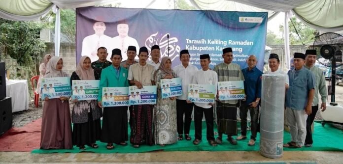 KARAWANG, SUARAKARAWANG.ID – Bupati Karawang H. Aep Syaepuloh, S.E. didampingi Wakil Bupati H. Maslani, unsur Forum Komunikasi Pimpinan Daerah (Forkopimda), serta Sekretaris Daerah Kabupaten Karawang H. Asep Aang Rahmatullah, S.STP., M.P., melaksanakan kegiatan Tarawih Keliling (Tarling) Ramadan 1447 H di Masjid Jamie Al-Ikhlas, Kecamatan Pangkalan, Kamis (5/3/2026).