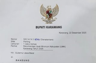 Rekomendasi tersebut tertuang dalam surat bernomor 500.14.14.1/4316/Disnakertrans tertanggal 22 Desember 2025. Penetapan ini merupakan hasil kesepakatan Dewan Pengupahan Kabupaten (DepeKab) Karawang yang menggelar rapat pada 19 Desember 2025.
