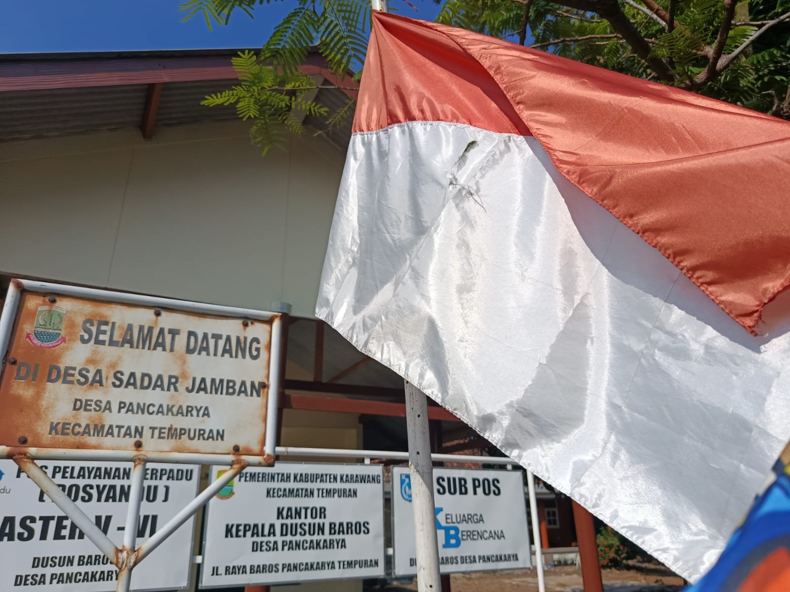 KARAWANG | SUARAKARAWANG.ID | Pemandangan memprihatinkan terlihat di Kantor Kewakilan Desa Pancakarya, Kecamatan Tempuran, Kabupaten Karawang, Jawa Barat, ketika bendera Merah Putih yang seharusnya menjadi simbol kehormatan negara tampak berkibar dalam kondisi yang sangat memprihatinkan.