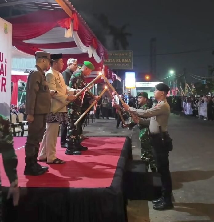 KARAWANG | SUARAKARAWANG.ID | Menyambut Hari Ulang Tahun (HUT) ke-80 Kemerdekaan Republik Indonesia, Pemerintah Kabupaten Karawang menggelar Upacara Penetapan Waktu (Taptu) dan Pawai Obor. Kegiatan yang berlangsung di Makodim 0604/Karawang pada Sabtu (16/8/2025) malam ini menjadi bagian dari tradisi menjelang peringatan kemerdekaan.